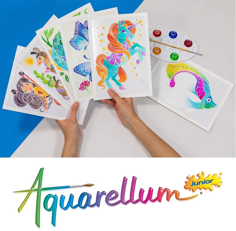 Fantastic! A few drops of paint and all children can make real masterpieces. Aquarellum Junior is based on a technique created by Véronique Déboise, crimping on vellum paper, which only allows the paint to stick on reserved surfaces. The pattern appears as the brush passes and can be painted until the painting is perfect. An ideal activity to introduce children to art by understanding the mix of colours, stimulating imagination and concentration.