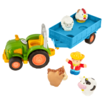 • 7-Piece Set: This farm toy set comes with a tractor, trailer, 4 animals, and a farmer.